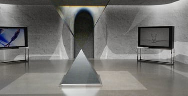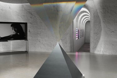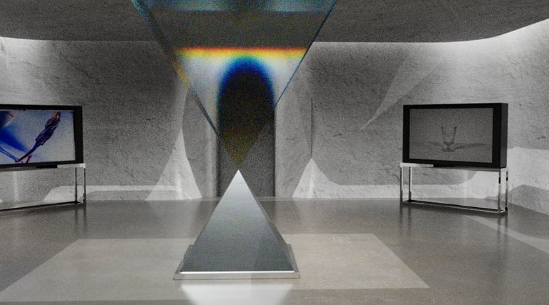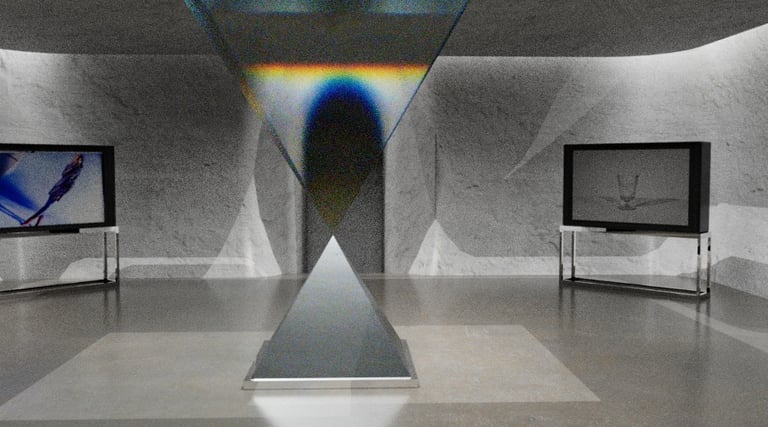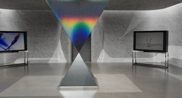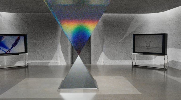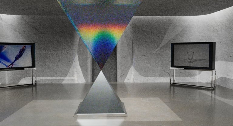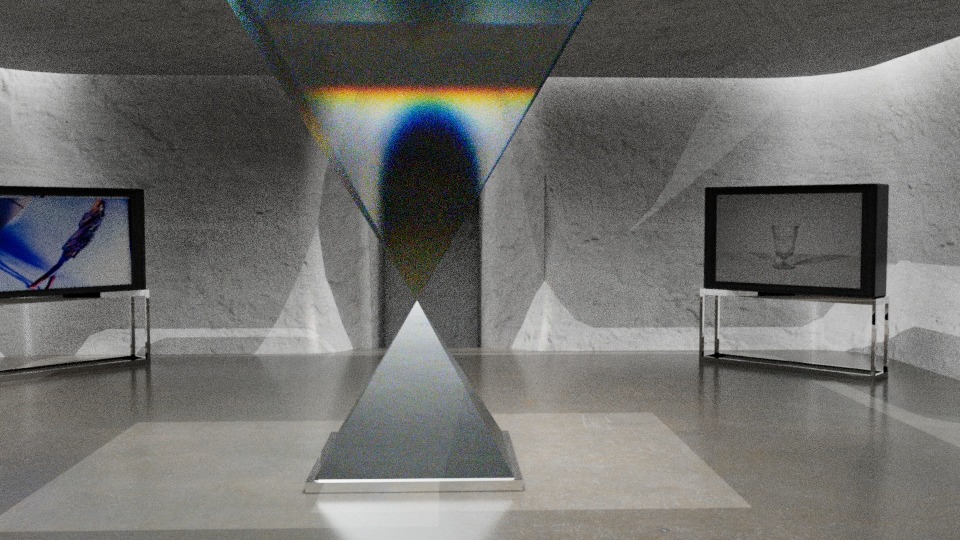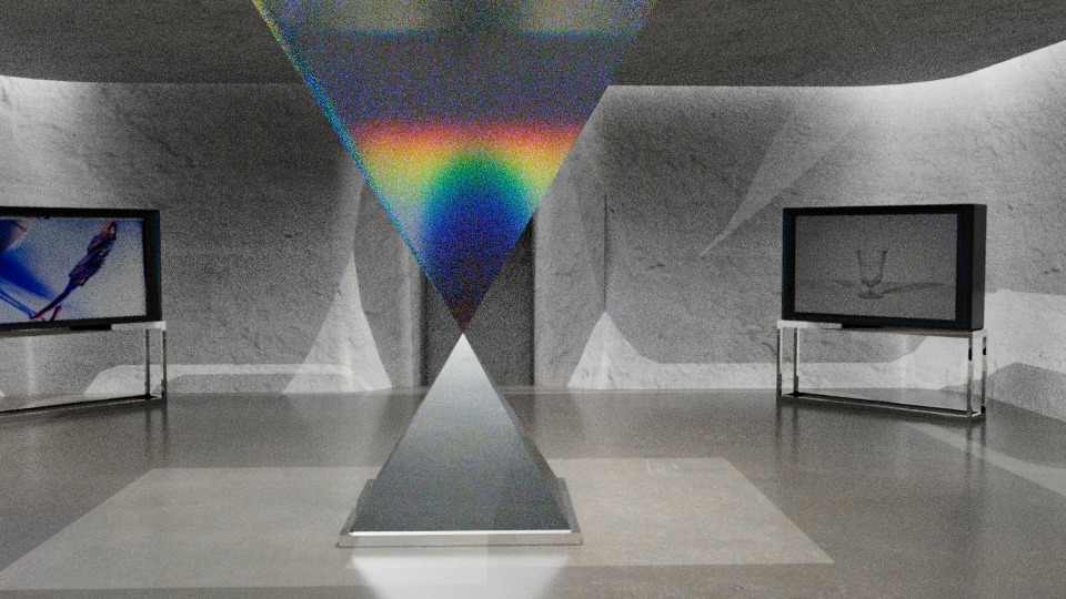This is one of the more interesting experiments I think I did while creating this project. In order to make the central square pyramid have a glass texture and also reflect rainbow-like refraction, I tried adjusting different values. Finally, four values were finalized in the IOR and the one with an IOR value of 1.03 was finally decided.