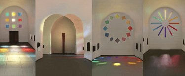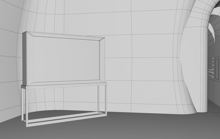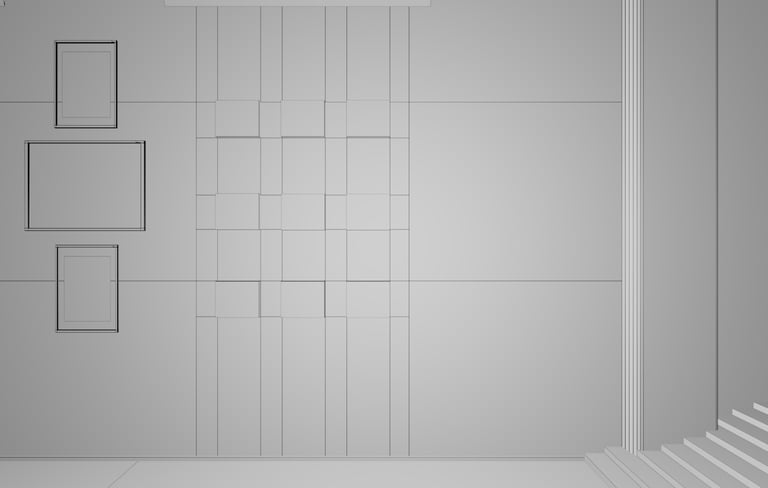 These are part of the white mold and all the textures used. Other decorations such as stained glass, TV stand and square pyramid in the middle are all options that come with Maya. Similarly, I hope to use more light to make the space more interesting, so I use white as a unified color for the walls, which just makes the texture slightly different.