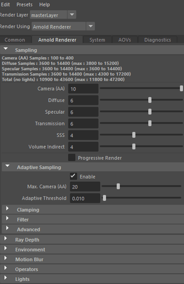This is the effect rendered at three different values. They are the original, changing samping and changing adaptive samping values.