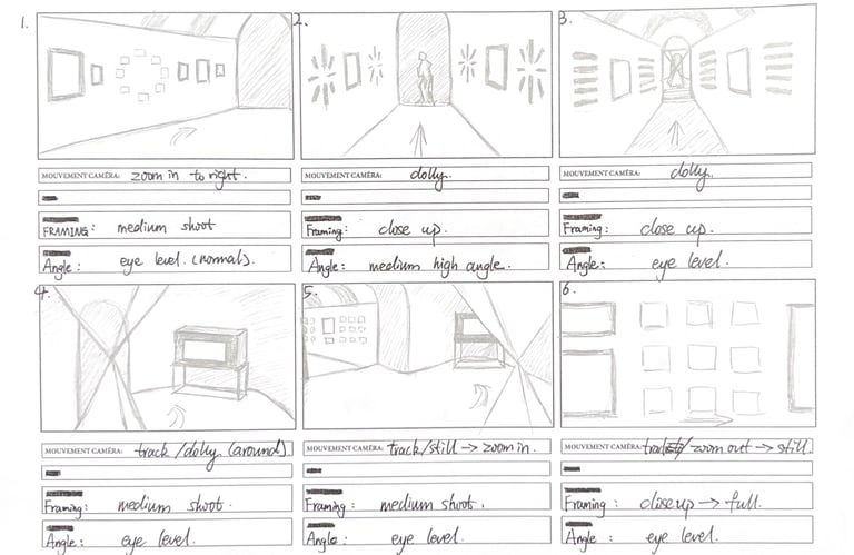 For the final video, I drew a storyboard, including settings such as angles and camera movements.