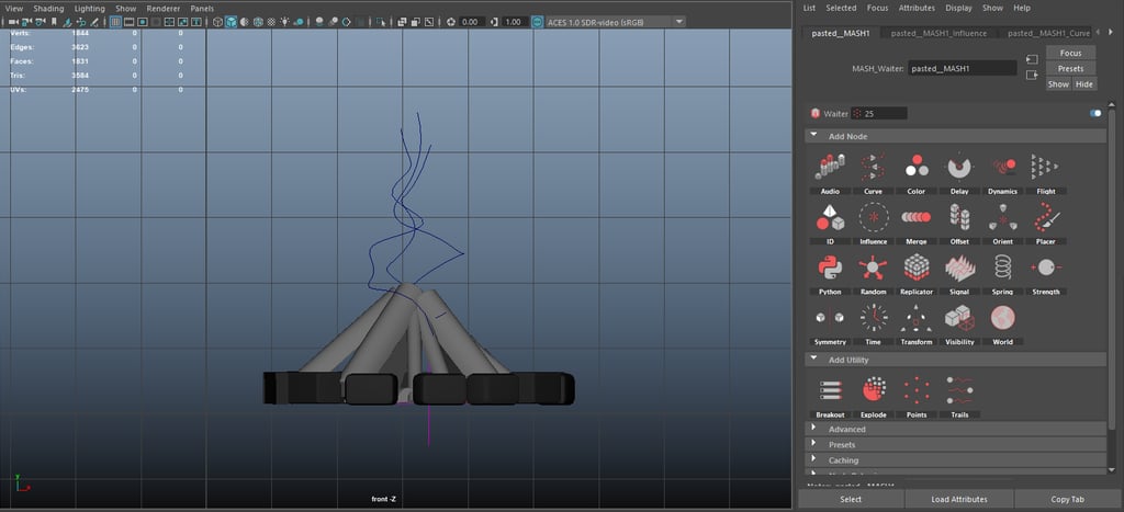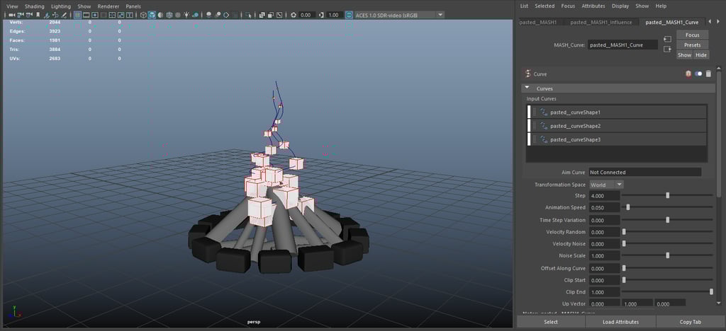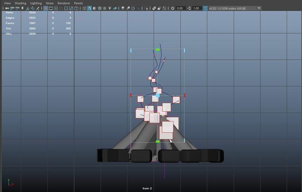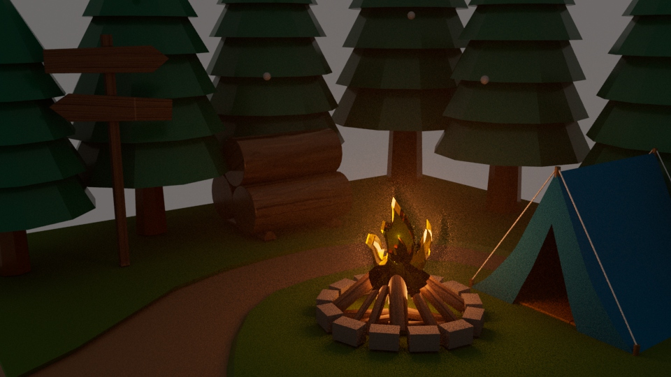 In this scene model, the most important skill I learned is the application of mesh and curve, how to make fire with burning dynamics is beyond the capabilities of ordinary mesh light. A trajectory needs to be added so that each flame block can follow the burning trajectory.